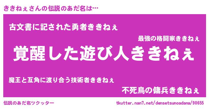 | 男性向けラノベタイトル風あだ名 | 『Re:ききねぇから始める異世界生活』 |