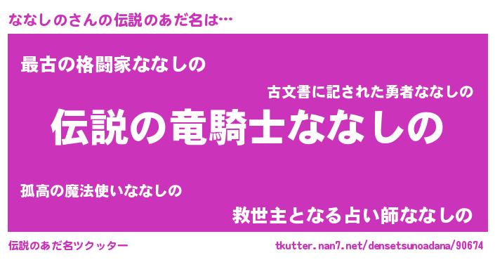 | ヒーロー風カッコイイあだ名 | 『スーパーナナシノ』『仮面ナナダー』 |