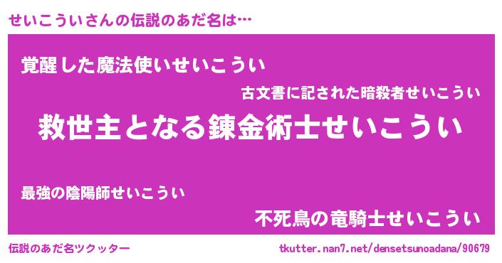 | 意味不明あだ名 | 『住所不定無職せいこうい(79歳)』 |