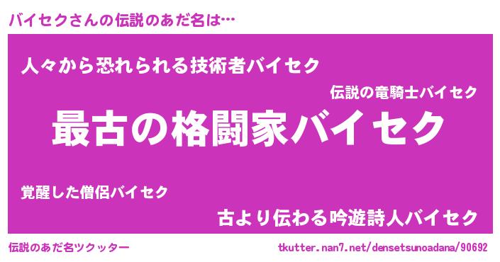 | ファンタジー風あだ名 | 『エターナルバイセクー』『ゼバイトゥ』 |