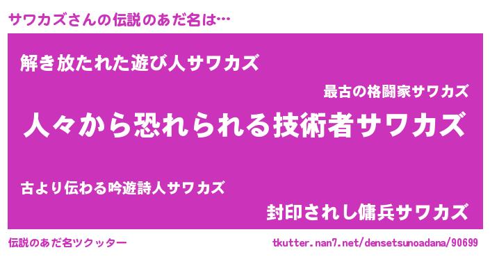 | ヒーロー風カッコイイあだ名 | 『正義の使者サワカズ』『仮面サワダー』 |