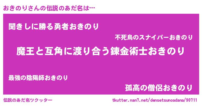 | ヘコむあだ名 | 『おきのり(遠い目)』『おきぷりん』 |