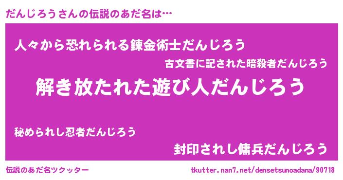 | 意味不明あだ名 | 『とにかく怪しいだんじろう』 |