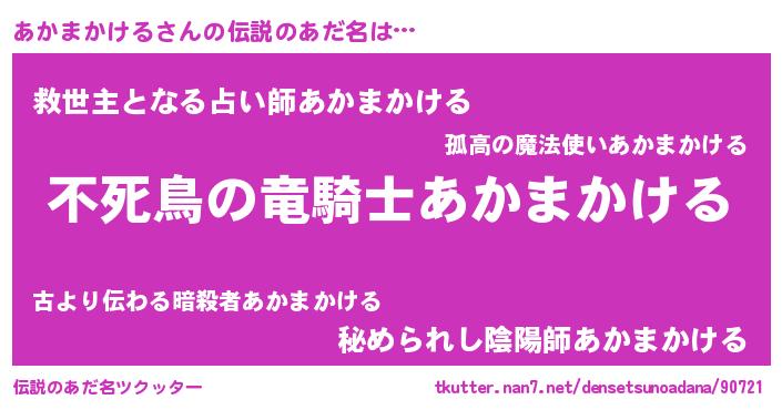 | ヒーロー風カッコイイあだ名 | 『スーパーアカマカケル』『仮面アカダー』 |