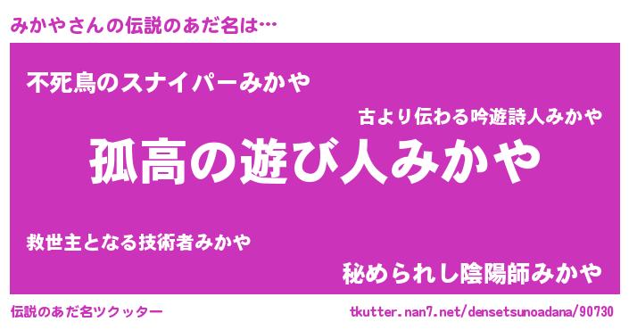 | 女子向けラノベタイトル風あだ名 | 『みかやは平凡を望む』 |