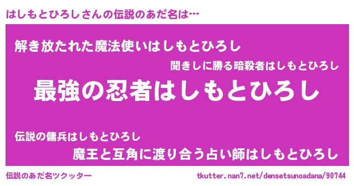 | ヒーロー風カッコイイあだ名 | 『最強戦士ハシモトヒロシ』 |