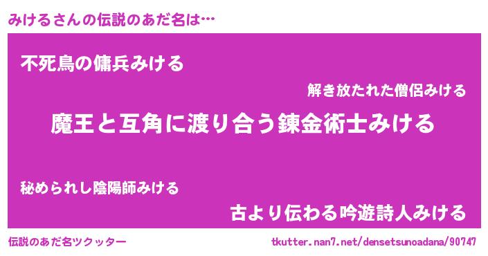 | ヒーロー風カッコイイあだ名 | 『友情の使者みける』『スーパーミケル』 |