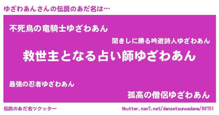 | 男性向けラノベタイトル風あだ名 | 『ゆざわあんに滅ぼされるだけの簡単なお仕事です』 |