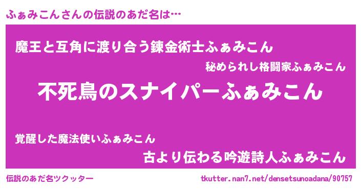 | 女子向けラノベタイトル風あだ名 | 『ふぁみこん姫と円卓の騎士』 |