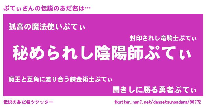 | 男性向けラノベタイトル風あだ名 | 『やはりぷてぃの青春ラブコメはまちがっている 』 |
