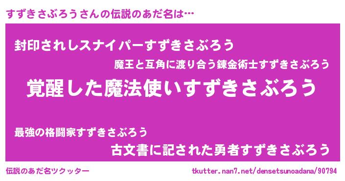 | 男性向けラノベタイトル風あだ名 | 『うちのすずきさぶろうが世界を掌握している!』 |