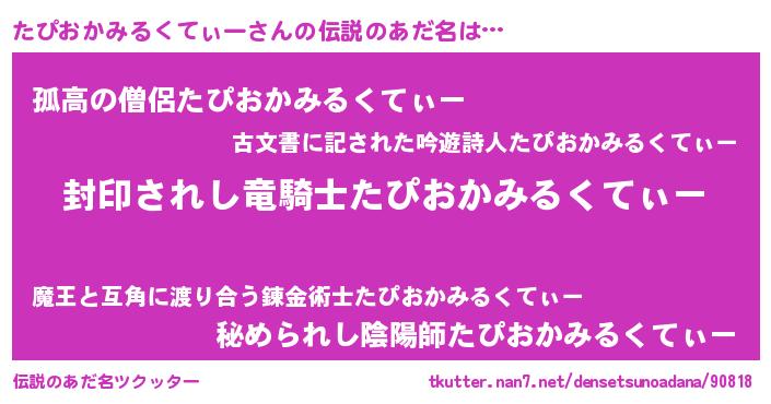 | ファンタジー風あだ名 | 『カークタピラー』『タピフェル』 |