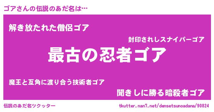 | 女子向けラノベタイトル風あだ名 | 『ゴア伯爵の花嫁』『ゴアは平凡を望む』 |