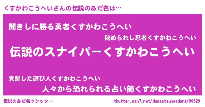 | 胡散臭い通販商品みたいなあだ名 | 『必ず成功する霊験あらたかなお札…その名も「くすかわこうへい」』 |