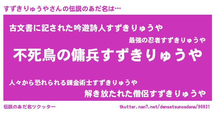 | 男性向けラノベタイトル風あだ名 | 『転生したらすずきりゅうやだった件』 |
