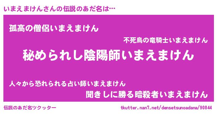 | 意味不明あだ名 | 『住所不定無職いまえまけん(93歳)』 |