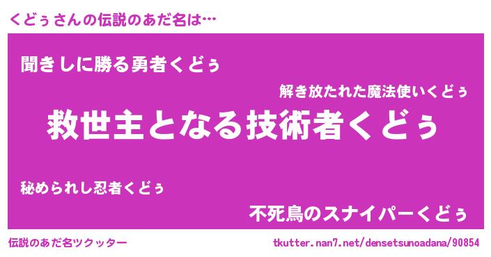 | ヒーロー風カッコイイあだ名 | 『慈愛の使者くどぅ』『仮面クドダー』 |