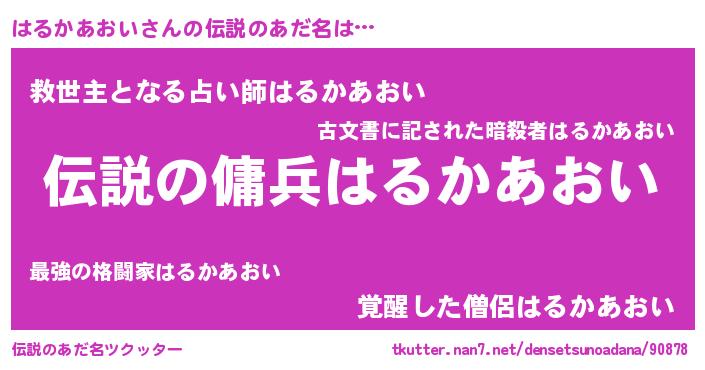 | 男性向けラノベタイトル風あだ名 | 『ハルカアオイスレイヤー』 |