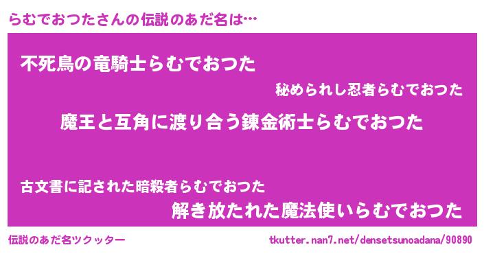 | ヒーロー風カッコイイあだ名 | 『慈愛の使者らむでおつた』 |
