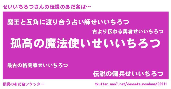 | 意味不明あだ名 | 『住所不定無職せいいちろつ(4歳)』 |