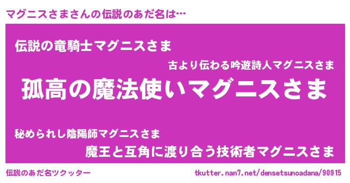 | 胡散臭い通販商品みたいなあだ名 | 『信頼と実績のサプリメント…その名も「マグニスさま」』 |