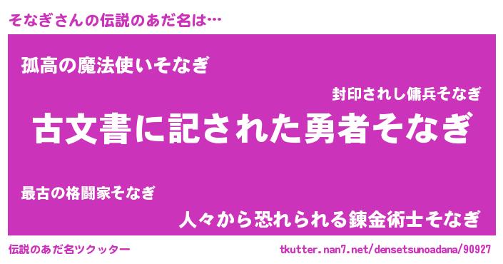 | 意味不明あだ名 | 『永久保存そなぎ』『自称そなぎ』 |
