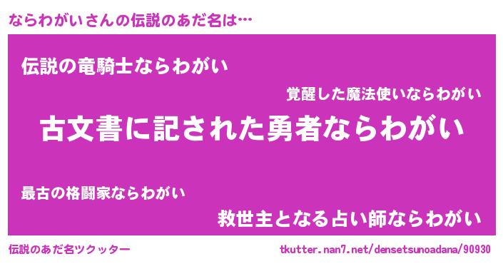 | ヒーロー風カッコイイあだ名 | 『究極戦士ナラワガイ』『仮面ナラダー』 |