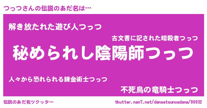 | ファンタジー風あだ名 | 『エターナルツッツー』『ゼツットゥ』 |