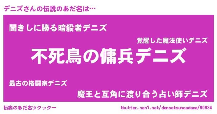 | ヒーロー風カッコイイあだ名 | 『ウルトラ戦士デニズ』『スーパーデニズ』 |