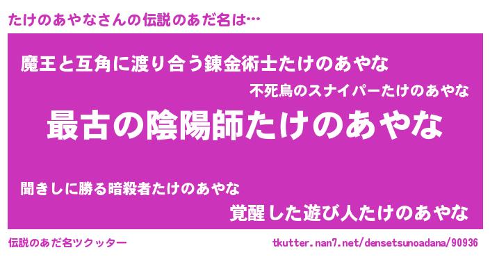 | ファンタジー風あだ名 | 『エターナルタケノアヤナー』 |