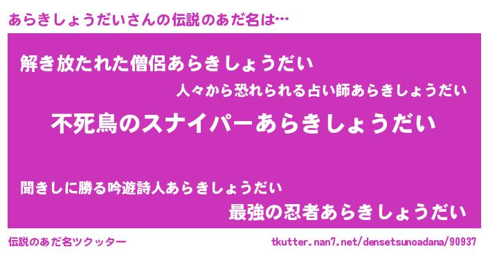 | 胡散臭い通販商品みたいなあだ名 | 『モテモテ間違いなし霊験あらたかなお札…その名も「あらきしょうだい」』 |