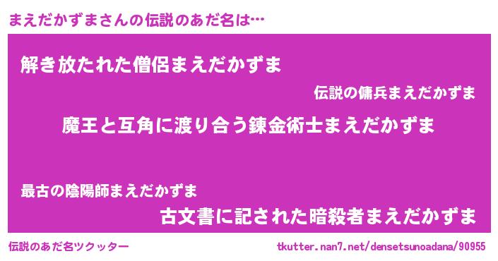 | 男性向けラノベタイトル風あだ名 | 『転生したらまえだかずまだった件』 |