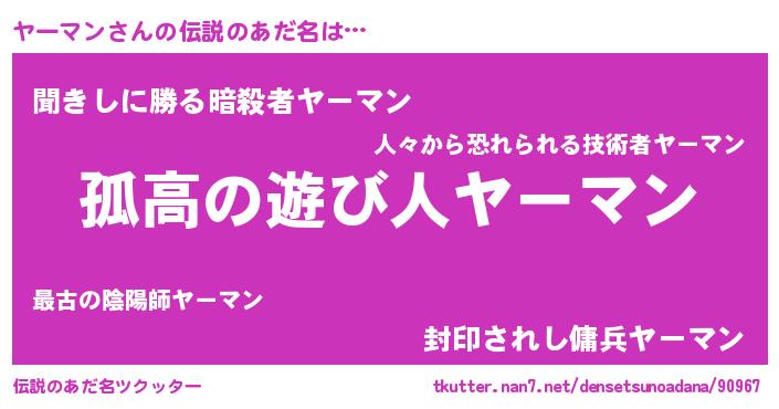 | ヒーロー風カッコイイあだ名 | 『ウルトラ戦士ヤーマン』『黄金騎士ヤー』 |