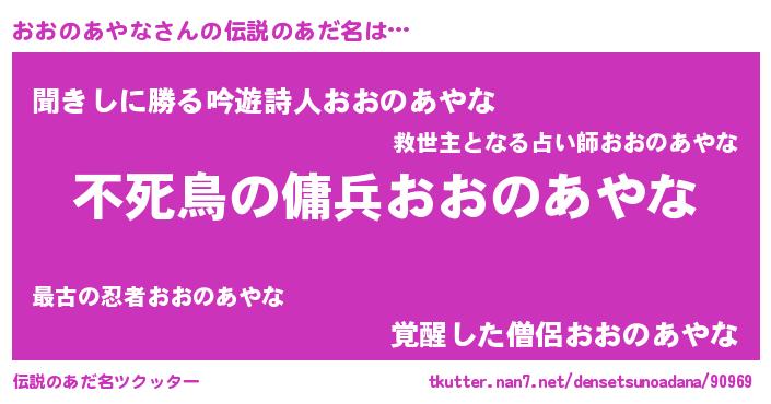 | ヒーロー風カッコイイあだ名 | 『スーパーオオノアヤナ』『暗黒騎士オオ』 |