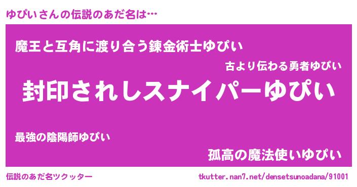 | 胡散臭い通販商品みたいなあだ名 | 『億万長者になれる霊験あらたかなお札…その名も「ゆぴい」』 |