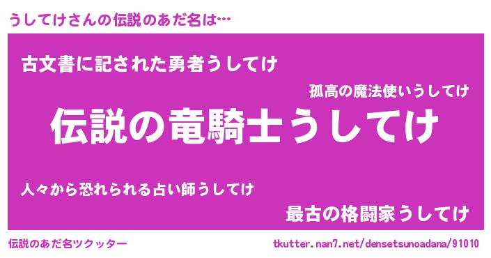| 男性向けラノベタイトル風あだ名 | 『魔弾の王とうしてけ』『うしてけの憂鬱』 |