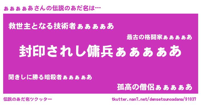 | 胡散臭い通販商品みたいなあだ名 | 『億万長者になれる水晶球…その名も「ぁぁぁぁあ」』 |