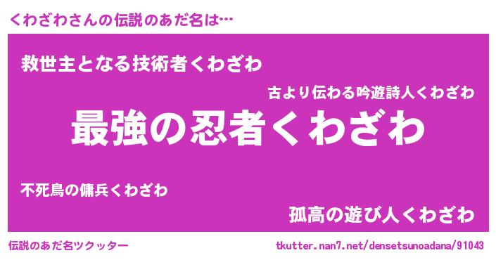 | ヒーロー風カッコイイあだ名 | 『究極戦士クワザワ』『愛の使者くわざわ』 |