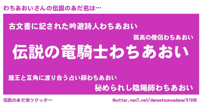 | 意味不明あだ名 | 『ペロリンわちあおい』『自称わちあおい』 |