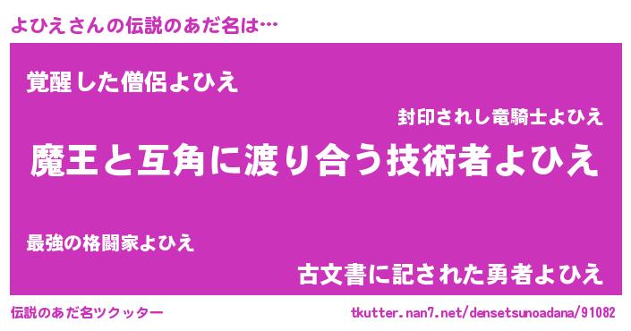 | ヒーロー風カッコイイあだ名 | 『愛の使者よひえ』『天弓騎士ヨヒ』 |