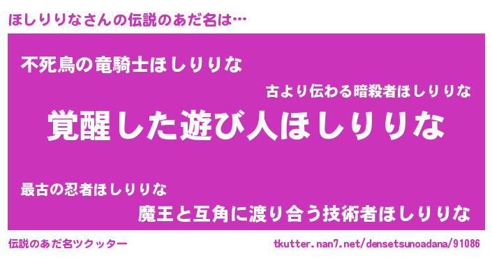 | 意味不明あだ名 | 『住所不定無職ほしりりな(89歳)』 |