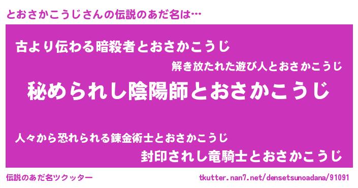 | ファンタジー風あだ名 | 『エターナルトオサカコウジー』 |