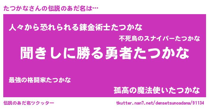 | ヒーロー風カッコイイあだ名 | 『ネオタツカナ』『正義の使者たつかな』 |