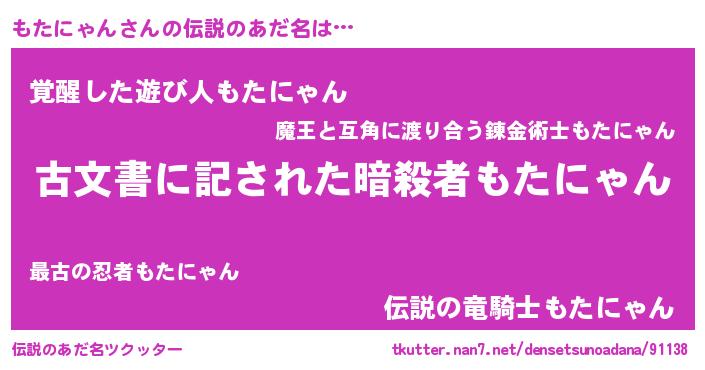 | 意味不明あだ名 | 『永久保存もたにゃん』 |
