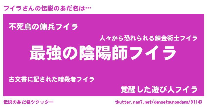| 男性向けラノベタイトル風あだ名 | 『この素晴らしい世界にフイラを!』 |