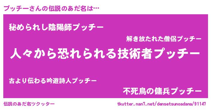 | ヒーロー風カッコイイあだ名 | 『友情の使者プッチー』『仮面プッダー』 |