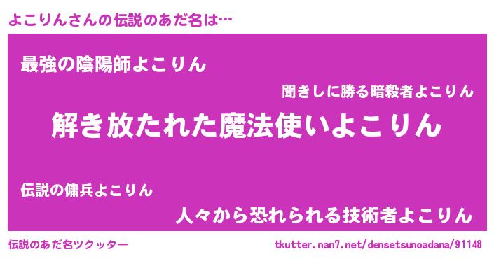 | ヒーロー風カッコイイあだ名 | 『幻影騎士ヨコ』『ウルトラよこりんマン』 |
