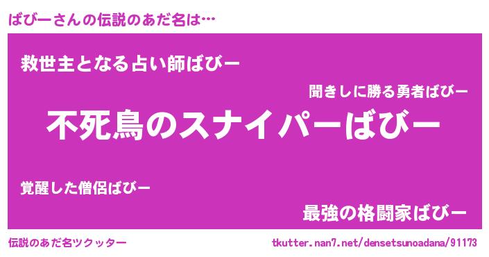| 女子向けラノベタイトル風あだ名 | 『ばびー姫と円卓の騎士』『闇のばびー』 |
