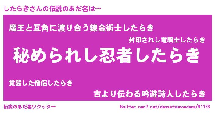 | 意味不明あだ名 | 『したらきフォーエバー』 |