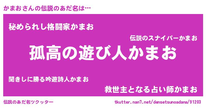| 意味不明あだ名 | 『とにかく怪しいかまお』『自称かまお』 |